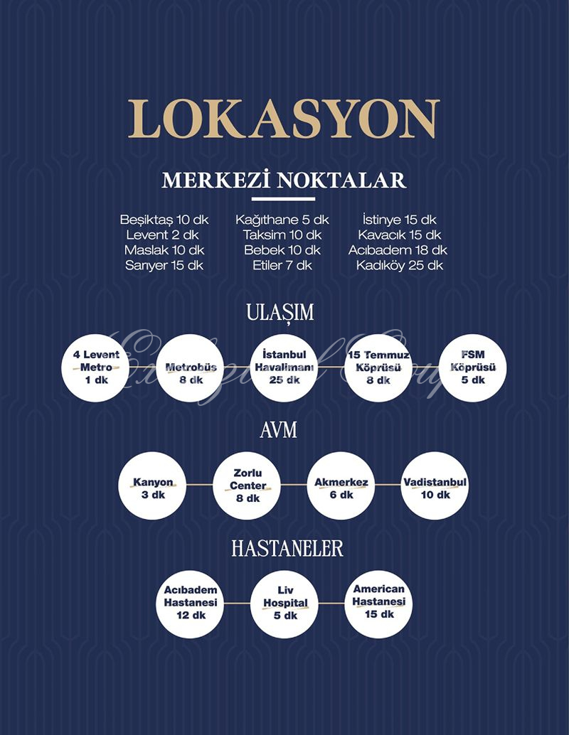- Идеальное расположение: В эпицентре современных бизнес-центров, элитных торговых кварталов, ресторанов высокой кухни и культурных достопримечательностей. Всего в нескольких шагах от метро, двух мостов и величественного Босфора – идеальное сочетание для тех, кто ценит как деловую хватку, так и насыщенную социальную жизнь.